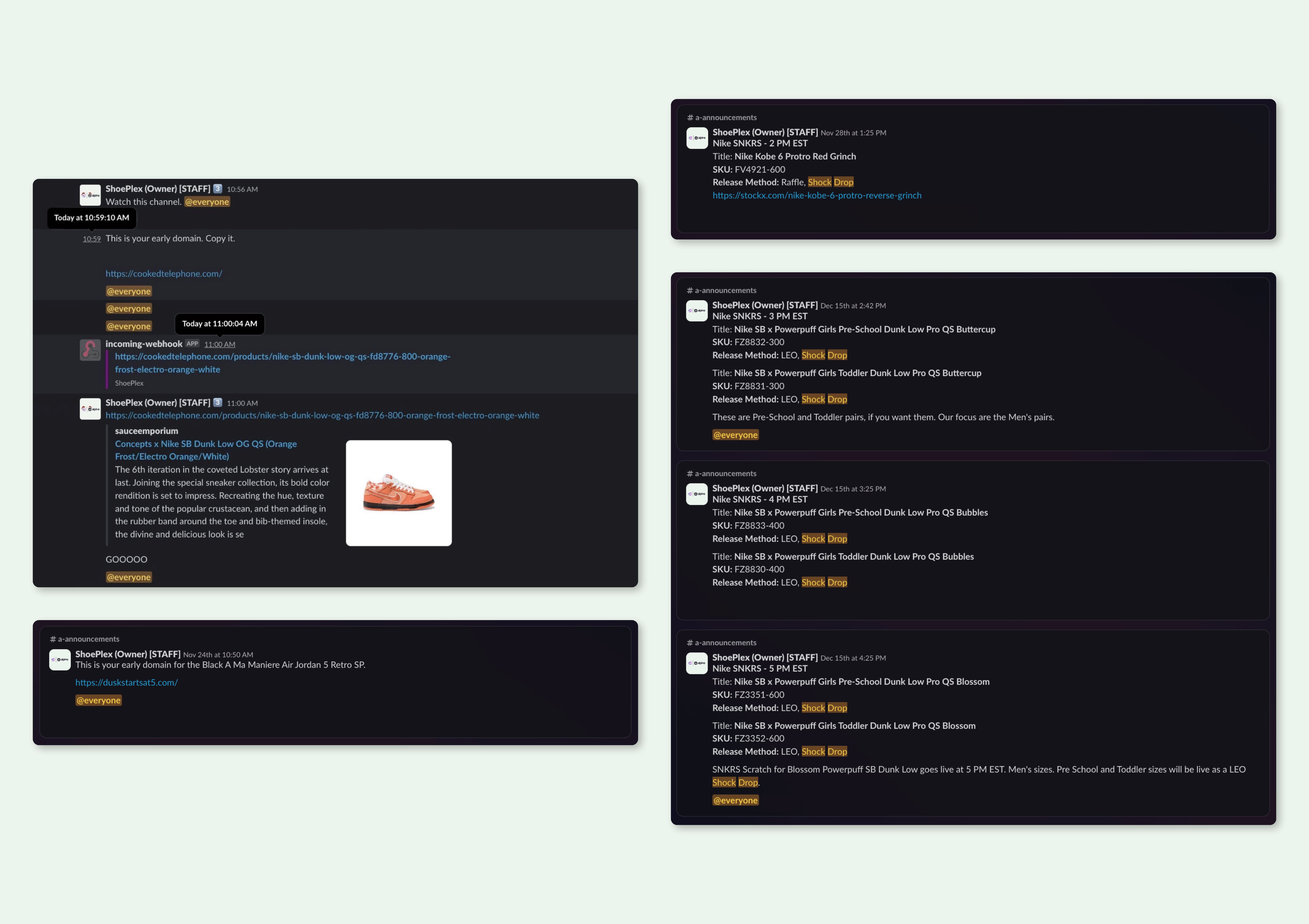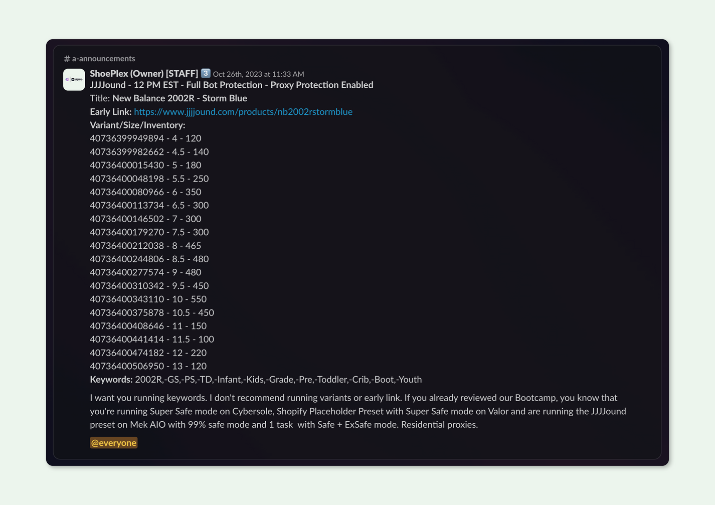 From early links to exact variants and exact stock numbers, our team provides the absolute best Shopify early info on the market. Early links and variants are provided for nearly every single site on release day.